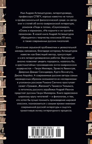 Имя Андрея Аствацатурова, литературоведа, профессора СПбГУ, хорошо известно не только в профессиональной филологической среде: он автор книг и статей об англо-американской литературе, романов «Люди в голом», «Скунскамера», «Осень в карманах», «Не кормите и не трогайте пеликанов». В новой книге Андрей Аствацатуров обращается к творчеству классиков ХХ века, а также современных русских писателей. Сочетание серьезной проблематики и увлекательной манеры изложения, благодаря которому Аствацатуров известен как блестящий лектор, присутствует и в его литературоведческих работах. Виртуозный анализ позволяет увидеть парадоксы, казалось бы, в хрестоматийных произведениях англо-американских модернистов — Генри Миллера, Эрнеста Хемингуэя, Джерома Дэвида Сэлинджера, Курта Воннегута, Джона Апдайка. А современные русские авторы самым неожиданным образом оказываются их наследниками: в уголовном рассказе Романа Сенчина проступает сюжет «Трамвая „Желание“» Теннесси Уильямса, а летописец русского зарубежья Андрей Иванов предстает русским Генри Миллером. Книга адресована широкому кругу читателей — и филологам, и тем, кто хотел бы лучше понимать произведения мировой классики, познакомиться с самыми яркими именами современной русской литературы и ощутить прихотливую логику литературного процесса.