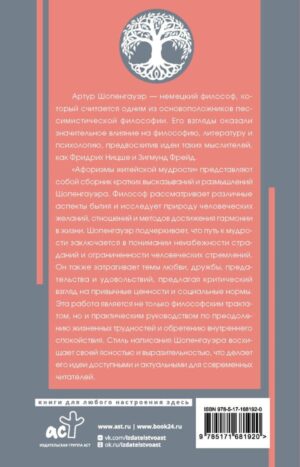 Артур Шопенгауэр — немецкий философ, который считается одним из основоположников пессимистической философии. Его взгляды оказали значительное влияние на философию, литературу и психологию, предвосхитив идеи таких мыслителей, как Фридрих Ницше и Зигмунд Фрейд. “Афоризмы житейской мудрости” представляют собой сборник кратких высказываний и размышлений Шопенгауэра. Философ рассматривает различные аспекты бытия и исследует природу человеческих желаний, отношений и методов достижения гармонии в жизни. Шопенгауэр подчеркивает, что путь к мудрости заключается в понимании неизбежности страданий и ограниченности человеческих стремлений. Он также затрагивает темы любви, дружбы, предательства и удовольствий, предлагая критический взгляд на привычные ценности и социальные нормы. Эта работа является не только философским трактатом, но и практическим руководством по преодолению жизненных трудностей и обретению внутреннего спокойствия. Стиль написания Шопенгауэра восхищает своей ясностью и выразительностью, что делает его идеи доступными и актуальными для современных читателей.