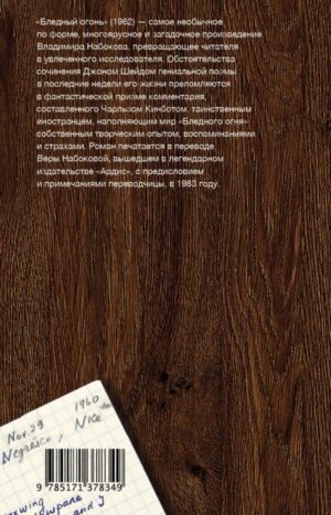 Название романа взято из пьесы Шекспира “Жизнь Тимона Афинского”: “Луна – наглый вор, и свой бледный огонь у солнца украла она”. В романе название “Бледный огонь” носит поэма вымышленного американского поэта Джона Фрэнсиса Шейда. Книга Набокова – это, фактически, текст самой поэмы и огромный комментарий к ней. Правда, комментарий этот, по сути, – самостоятельный текст, вступающий с текстом поэмы в своеобразный диалог: о сути и значении искусства, о достоверности и фальсификации информации, о рациональном и интуитивном, о взаимоотношениях сиюминутного и вечного, о жизни и смерти, в конце концов. Как говорил о романе сам Набоков, “поэт раскрывается в своей поэме, а комментатор – в комментарии”. При этом диалог поэта и комментатора не только насыщен огромным количеством литературных аллюзий, не только безупречно написан, не только оригинален и смел даже по сегодняшним меркам, но еще и невероятно остроумен, так что читать его не только увлекательно, но еще и очень весело.