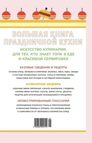 В глоссарии содержатся варианты меню для фуршета — от аперитива до обеденного и вечернего, иллюстрируются основные приемы и этапы приготовления, особенности очистки, нарезки, шинковки продуктов, термической обработки и сопутствующих процессов. Рецепты, советы и идеи, изложенные в этой книге, помогут вам сделать праздничный прием гостей ярким и незабываемым!