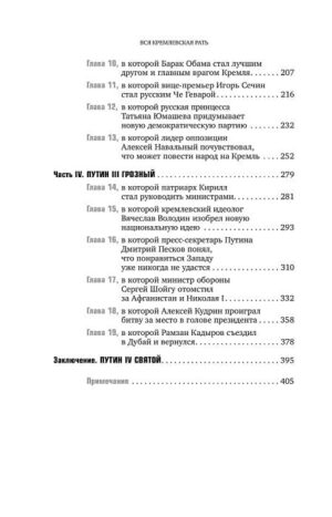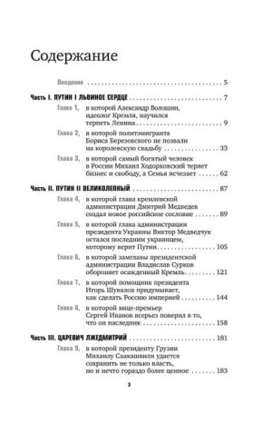 Գրքում ներկայացված է Ռուսաստանի պատմությունը Վլադիմիր Պուտինի իշխանության օրոք (2000-2015թթ.): Գրքի հիմքում փաստաթղթեր են, բաց աղբյուրներ և տասնյակ հարցազրույցներ, որոնք հեղինակ վերցրել է Պուտինի մոտ շրջապատից: Մեկ գրքի մեջ հավաքված մտքեր, կարծիքները, փաստերը ստեղծում են Կրեմլի ու մասնավորապես Պուտինի ամբողջական պատկերը: