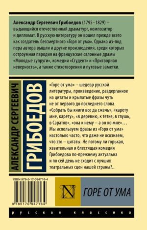 «Горе от ума» – шедевр русской литературы, произведение, раздерганное на цитаты и крылатые фразы чуть не от первого до последнего слова. «Собрать бы книги все да сжечь», «карету мне, карету», «в деревню, к тетке, в глушь, в Саратов», «она к нему – а он ко мне»… Мы используем фразы из «Горя от ума» настолько часто, что даже не осознаем, что это – цитаты. Не потому ли горькая, язвительная и блестящая комедия Грибоедова по-прежнему актуальна и по сей день не сходит с лучших театральных сцен нашей страны?