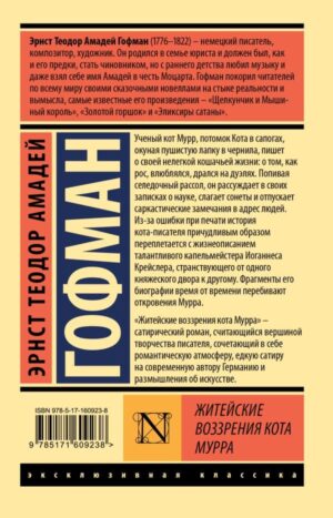 “Житейские воззрения кота Мурра” – сатирический роман, считающийся вершиной творчества писателя, сочетающий в себе романтическую атмосферу, едкую сатиру на современную автору Германию и размышления об искусстве.