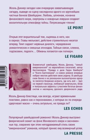 Сюжет нового романа Жоэля Диккера развивается стремительно: уже на самой первой странице официант фешенебельного швейцарского отеля находит в номере 622 труп одного из постояльцев. Много лет спустя в номер 623 вселяется молодой писатель, который приехал на склоны Альп, чтобы пережить расставание с возлюбленной и смерть близкого друга. Герой начинает изучать подробности этого старого дела – скорее ради того, чтобы отвлечься от собственных проблем, но практически сразу оказывается в центре огромной паутины интриг, разбитых надежд, династических браков и финансовых махинаций. Ставка в этой сложной, многоуровневой игре – деньги и власть. И ради выигрыша игроки пойдут буквально на всё. Повествование то перемещается в наши дни, то переносит читателя в прошлое, во временные отрезки, предшествующие и следующие за убийством. Так, глава за главой, страница за страницей, герой все ближе и ближе подбирается к разгадке, складывая воедино все фрагменты этого чисто швейцарского убийства.