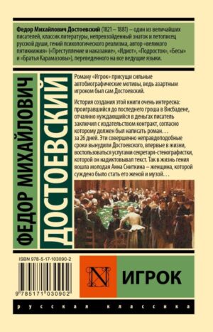 Роману “Игрок” присущи сильные автобиографические мотивы, ведь азартным игроком был сам Достоевский.