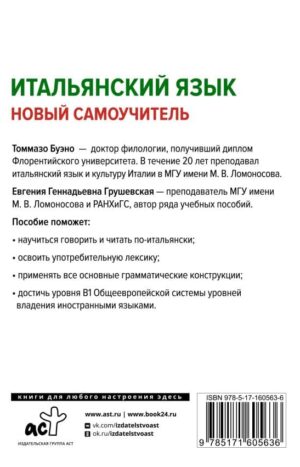 Самоучитель содержит вводный фонетический курс и 12 полных тематических уроков итальянского языка. Книгу отличает идеальный баланс грамматического, лексического и текстового материала. В каждом уроке – интересный текст и два диалога на заданную тему с очень употребительной разговорной лексикой. Все новые слова вынесены в отдельные разделы и даются с переводом на русский язык. Для отработки и закрепления навыков представлены комплексы лексических и грамматических упражнений. В конце книги даны ключи, тесты, а также итальянско-русский и русско-итальянский словари. Авторская методика позволяет эффективно и в обозримые сроки выучить итальянский язык. Освоив предложенный курс, вы достигните уровня B1 Общеевропейской системы уровней владения иностранными языками.