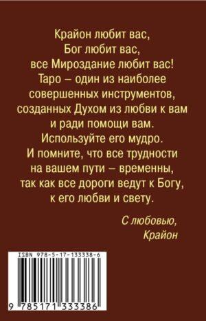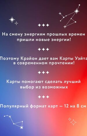 В этой коробке вы найдете полную колоду Таро Уэйта и книгу с методикой работы с картами Таро и посланиями Крайона, соответствующими значениям карты, помогающими вам извлечь позитивные возможности из вашей жизненной ситуации и сделать лучший выбор из возможных.