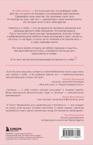 Нежность к себе — это не результат волевого решения или однажды данного себе обещания, это всегда дорога. Пусть эта книга станет для вас проводником, если вы готовы с доброжелательным любопытством исследовать свои «не могу», «не хочу» и «не буду» и плыть не по течению и не против него — а туда, куда вам нужно.