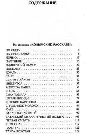 Այս գիրքն ընթերցողին ծանոթացնում է հանրահայտ ռուս սովետական գրող Վառլամ Շալամովի ստեղծագործություններին: Աշխատությունները, որոնք տեղ են գտել սույն գրքում, ամբողջական պատկերացում են տալիս հեղինակ ստեղծագործական կյանքի տարբեր փուլերի մասին: