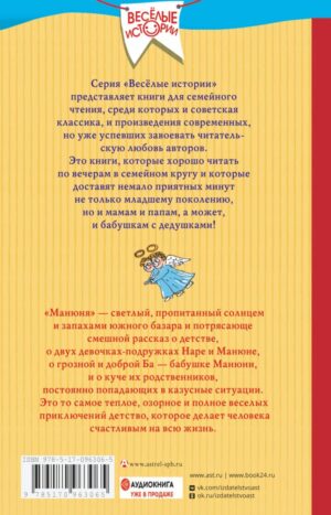 “Манюня” — светлый, пропитанный солнцем и запахами южного базара и потрясающе смешной рассказ о детстве, о двух девочках-подружках Наре и Манюне, о грозной и доброй Ба — бабушке Манюни, и о куче их родственников, постоянно попадающих в казусные ситуации. Это то самое теплое, озорное и полное веселых приключений детство, которое делает человека счастливым на всю жизнь.