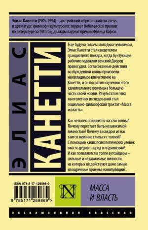 Еще будучи совсем молодым человеком, Элиас Канетти стал свидетелем грандиозного пожара, когда бунтующие рабочие подожгли венский Дворец правосудия. Согласованные действия возбужденной толпы произвели неизгладимое впечатление на Канетти, и он посвятил изучению этого удивительного феномена большую часть своей жизни. Результатом этих многолетних исследований стал социально-философский трактат “Масса и власть”.