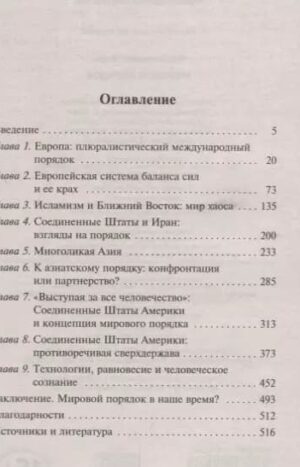 В своей книге «Мировой порядок» Генри Киссинджер анализирует современное состояние мировой политики и приходит к неутешительному выводу о провале единой системы баланса сил и необходимости реконструкции международной системы.
