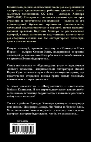 Также в работы Эдварда Хоппера вдохнули “литературную жизнь” Джеффри Дивер, Ли Чайлд и Лоренс Блок. Хотя, возможно, читатель увидит в его картинах “свою” историю, которая будет ждать, чтобы ее рассказали…