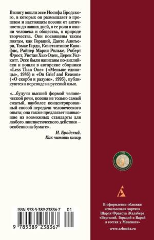 В книгу вошли эссе Иосифа Бродского, в которых он размышляет о прошлом и настоящем поэзии от античности до наших дней, о ее роли в жизни человека и общества, о природе творчества. Они посвящены таким поэтам, как Гораций, Данте Алигьери, Томас Гарди, Константинос Кавафис, Райнер Мария Рильке, Роберт Фрост, Уистан Хью Оден, Дерек Уолкотт. Эссе были написаны по-английски и вошли в авторские сборники «Less Than One» («Меньше единицы», 1986) и «On Grief and Reason» («О скорби и разуме», 1995), публикуются в переводе на русский язык.