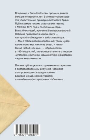 Владимир и Вера Набоковы прожили вместе свыше пятидесяти лет — в литературном мире это удивительный пример счастливого брака. Они редко расставались надолго, и все же в их архиве сохранилось более трехсот писем и записок Набокова, с 1923 по 1975 год. Один из лучших писателей ХХ века, блестящий, ироничный и взыскательный Набоков предстает в этой книге нежным и заботливым мужем. «…Мы с тобой совсем особенные; таких чудес, какие знаем мы, никто не знает, и никто так не любит, как мы», — писал он в 1924 году. Вера Евсеевна была его первым читателем, его машинисткой и секретарем, а после смерти писателя переводила его английские произведения и оберегала его обширное наследие.