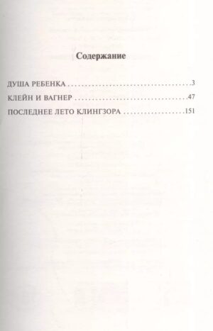 Три повести Германа Гессе — «Душа ребенка», «Клейн и Вагнер», «Последнее лето Клингзора» — впервые были изданы, по настоянию автора, единым сборником еще при его жизни, и с тех пор неизменно публикуются вместе.