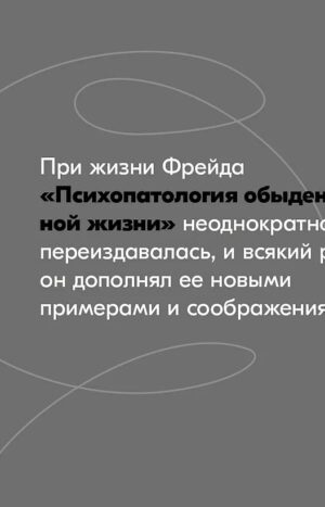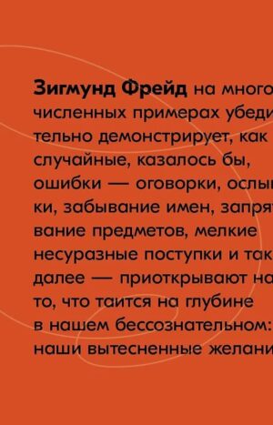 «Психопатология обыденной жизни», впервые изданная в 1901 году, — ранняя книга Зигмунда Фрейда, крайне популярная у широкой публики. Эта работа стала одной из важнейших в его научной биографии и одной из ключевых в истории психоанализа; Жак Лакан считал ее одним из важнейших в истории трудов для понимания бессознательного. Здесь Фрейд на многочисленных примерах, почерпнутых главным образом из собственной жизни или жизни коллег и друзей, убедительно демонстрирует, как случайные, казалось бы, ошибки — оговорки, ослышки, забывание имен, запрятывание предметов, мелкие несуразные поступки и так далее — приоткрывают нам то, что таится на глубине в нашем бессознательном: наши вытесненные желания. В мире, где способность к рефлексии и честность с собой встречаются реже, чем хотелось бы, эта книга, увлекательная и беспристрастная, остается непременным чтением для любого, кто готов посмотреть в себя и встретиться взглядом с собственным «я». При жизни Фрейда «Психопатология обыденной жизни» неоднократно переиздавалась, и всякий раз он дополнял ее новыми примерами и соображениями. Мы публикуем новый полный перевод этого классического труда.