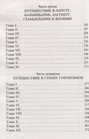По воле судьбы корабельный врач Лемюэль Гулливер оказывается на судне, которое терпит крушение. Так начинается шестнадцатилетнее путешествие героя: от Лилипутии до страны лошадей с разумом человека — гуигнгнмов. Свифт при помощи фантастического сюжета, мягкой иронии, а порой и ядовитого сарказма высмеивает человеческие пороки и обнажает социальные язвы общества.
