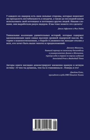 «Книга предлагает вашему вниманию уникальный список лидеров из разных слоев общества и сфер деятельности. Вы наверняка найдете образец для подражания и стиль руководства, которые будут близки вам по духу и смогут соответствовать вашим стремлениям. Вы познакомитесь с практическими рекомендациями, инструментами и техниками, которые сможете применить для развития своих лидерских навыков вне зависимости от того, что день грядущий вам готовит. К лидерству ведет много дорог. И пришла пора начать свой путь к развитию разума лидера». (Джим Афремов, Фил Уайт)