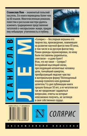 Итак, что же такое – Солярис? Бескрайний мыслящий океан, преследующий непонятные человеку цели, тончайший камертон, преобразующий людские чувства в материальную форму? Воплощенный кошмар психолога или духовный целитель? Со дня публикации книги прошло больше 50 лет, а ее читатели все так же продолжают задаваться вопросами, ответы на которые невозможно получить, не заглянув в свое собственное сердце.