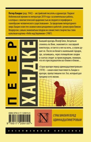 “Страх вратаря перед одиннадцатиметровым” (1970) – самая известная повесть Хандке о вратаре, пропустившем гол. Гол, который дал трещину в его жизни.