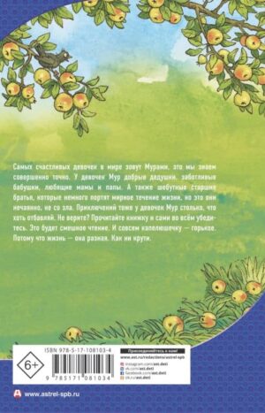 Самых счастливых девочек в мире зовут Мурами, это мы знаем совершенно точно. У девочек Мур добрые дедушки, заботливые бабушки, любящие мамы и папы. А также шебутные старшие братья, которые немного портят мирное течение жизни, но это они нечаянно, не со зла. Приключений тоже у девочек Мур столько, что хоть отбавляй. Не верите? Прочитайте книжку и сами во всём убедитесь. Это будет смешное чтение. И совсем капелюшечку — горькое. Потому что жизнь — она разная. Как ни крути.