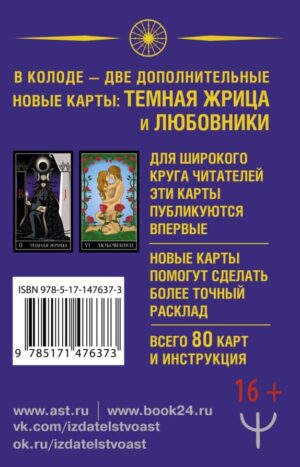 Эта колода включает в себя уникальные карты! Две очень редкие дополнительные карты Темная Жрица и Любовники помогут сделать расклад более эффективным и глубоким.