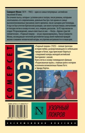 «Узорный покров» (1925) — полная трагизма история любви, разворачивающаяся в небольшом городке в Китае, куда приезжают бороться с эпидемией холеры молодой английский бактериолог с женой.