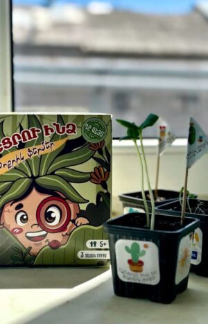 Խաղը պարունակում է 3 տեսակ բույս՝ ծաղիկ, վարունգ, լոլիկ, և տնկման համար նախատեսված բոլոր դետալները: Երեխան ինքնուրույն կարող է տնկել իր առաջին բույսը: Տնկման և աճեցման փուլերը մանրամասն ներկայացված են ուղեցույցում: Համոզված ենք, որ այս խաղը կդառնա երեխայի սիրելին: