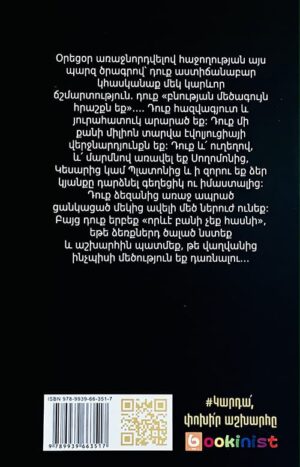 Օրեցօր առաջնորդվելով հաջողության այս պարզ ծրագրով՝ դուք աստիճանաբար կհասկանաք մեկ կարևոր ճշմարտություն. դուք «բնության մեծագույն հրաշքն եք»… Դուք հազվագյուտ և յուրահատուկ արարած եք: Դուք մի քանի միլիոն տարվա էվոլյուցիայի վերջնարդյունքն եք: Դուք և՛ ուղեղով, և՛ մարմնով առավել եք Սողոմոնից, Կեսարից կամ Պլատոնից և ի զորու եք ձեր կյանքը դարձնել գեղեցիկ ու իմաստալից: Դուք ձեզանից առաջ ապրած ցանկացած մեկից ավելի մեծ ներուժ ունեք: Բայց դուք երբեք «որևէ բանի չեք հասնի», եթե ձեռքներդ ծալած նստեք և աշխարհին պատմեք, թե վաղվանից ինչպիսի մեծություն եք դառնալու…