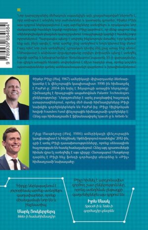 Նոր դարաշրջանից մեծագույն սպասելիքն այն չբացահայտված ներուժն է, որը ստիպում է անցնել նոր սահմաններ եւ գյուտեր անել։ Լեգենդար ձեռնարկատեր եւ ներդրող Փիթեր Թիլն այս գրքում ներկայացնում է այդ արժեքները ստեղծելու եւ որակապես նոր մակարդակի հասնելու եզակի ուղիները։