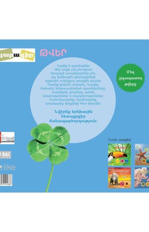 Այս զարմանահրաշ գիրքը երեխային կսովորեցնի հաշվել 1-ից մինչև 12-ը: Մեզ շրջապատող աշխարհը փոքրիկին կօգնի գումարել, հանել, բազմապատկել և բաժանել թվերը, առարկաները դասավորել աճման կամ նվազման կարգով, համեմատել և խմբավորել, բացահայտել զույգ և կենտ թվերը: