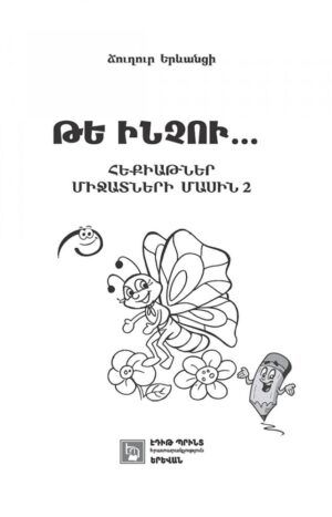 Երևի դեռ մանուկ հասակից ձեզ հետաքրքրել է, թե ինչո՞ւ են մրջյուններն ապրում հողի տակ և օրնիբուն աշխատում, կամ՝ թե ինչո՞ւ են մեղուները խայթում, երբ մոտենում ենք իրենց փեթակներին: Եվ ընդհանրապես, միգուցե դուք արդեն ցանկանո՞ւմ եք լսել զարմանահրաշ միջատների մասին հետաքրքիր պատմություններ: Դե ուրեմն, սիրելի՛ երեխաներ, առիթը բաց մի թողեք և կարդացե՛ք այս հեքիաթները: Եվ ոչ միայն կարդացե՛ք, այլև գունազարդե՛ք գրքույկում զետեղված նկարները: