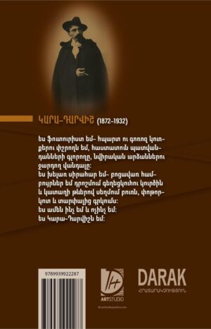 Կարա-Դարվիշի այս ստեղծագործությունն առաջին անգամ է տպագրվում Հայաստանում: Սա ոչ միայն պատմություն է սիրային բարդ եռանկյունու և դրա հանգուցալուծման մասին, այլև կարա-դարվիշյան էսթետիկայի ու կենսափիլիսոփայության սինթեզն է` համեմված ակնհայտ նատուրալիզմով և քողարկված սոցիալականությամբ: