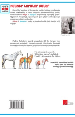 «Ինչու և ինչպես»-ի այս հատորն ամենայն մանրամասնությամբ պատասխանում է ձիերին առնչվող բոլոր հարցերին: Ընթերցողն արժեքավոր գիտելիք է ստանոմ ձիերի մասին, տեղեկանում ծագման պատմությանը, ընտանի կենդանի վերածվելուն, բազմաթիվ ցեղատեսակների առանձնահատկություններին, վարժեցմանը, սիրելի չորոտանու գնման նրբություններին և «ձիամասնագիտություններին»: