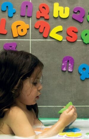 Երեխաները սիրում են խաղալ լոգարանում, մենք էլ առիթից օգտվելով՝ կրկնապատկում ենք այդ հաճույքը պայծառ գույներով, տառերով ու թվերով։