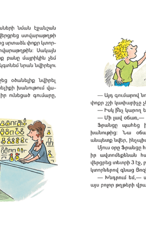 Մեր հերոսը շարունակ հայտնվում է մանկական խնդիրների առջև. երբեﬓ ընկճվում է, hուսահատվում: Բայց ահա օգնության են հասնում հարազատները, և հեղինակի թեթև գրչով բոլոր խնդիրները լուծվում են…