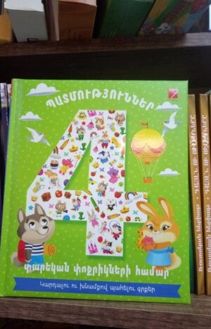 «Պատմություններ 4 տարեկան փոքրիկների համար». 5 զվարճալի պատմությունների այս աննման հավաքածուն հատուկ 4 տարեկան փոքրիկների համար է գրված: Սրանից լավը չեք գտնի: Է՛լ գիշերային խորհրդավոր արկածներ, է՛լ անձրև օրով՝ զվարճություններ, նոր ընկերներ ու անկրկնելի հանդիպումներ, որ անտարբեր չեն թողնի ո՛չ երեխաներին, ո՛չ նրանց ծնողներին: