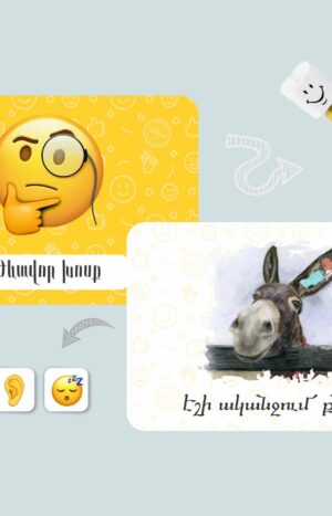 Գցում ենք զառը , հասկանում որ կատեգորիայի խաղաքարտն է մեզ բաժին հասել, կարդում ենք խաղաքարտում գրված արտահայտությունը և էմոջիների օգնությամբ բացատրում խաղաքարտի վրա գրվածը: