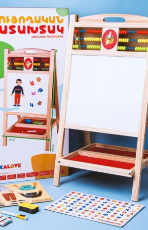 Հագուստներով երկկողմանի գրատախտակը հիանալի միջոց է փոքրիկների մոտ սովորելու ցանկություն առաջացնելու, ինչպես նաև ուսումնական գործընթացին նախապատրաստվելու համար։