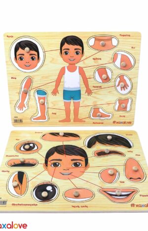 Վերցրեք Xaxalove-ի «Ճանաչում ենք աշխարհը» շարքի «Հագուստներ» խաղ-տախտակը կամ «Արամիկ» և «Մարիամիկ» խաղ-տախտակները, խնդրեք երեխային տեղադրել հագուստը մարմնի ճիշտ հատվածում: